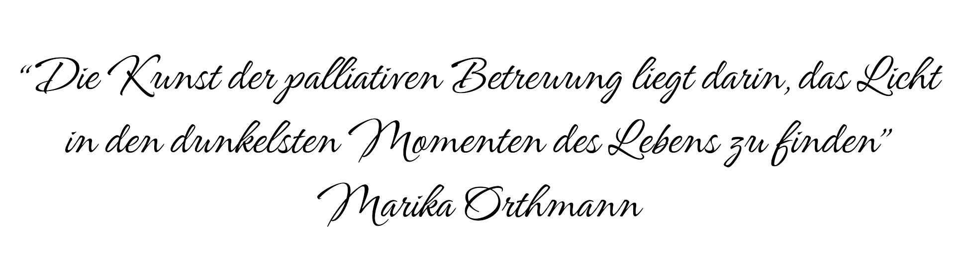 Meine Name ist Marika Orthmann und ich lebe und liebe meinen Beruf. Willkommen auf unserer Website zur palliativen Therapie! Palliative Therapie konzentriert sich darauf, die Lebensqualität von Menschen mit schweren, fortgeschrittenen Erkrankungen zu verbessern. Unser Ziel ist es, Symptome zu lindern, Schmerzen zu minimieren und sowohl Patienten als auch ihren Angehörigen umfassende Unterstützung zu bieten.